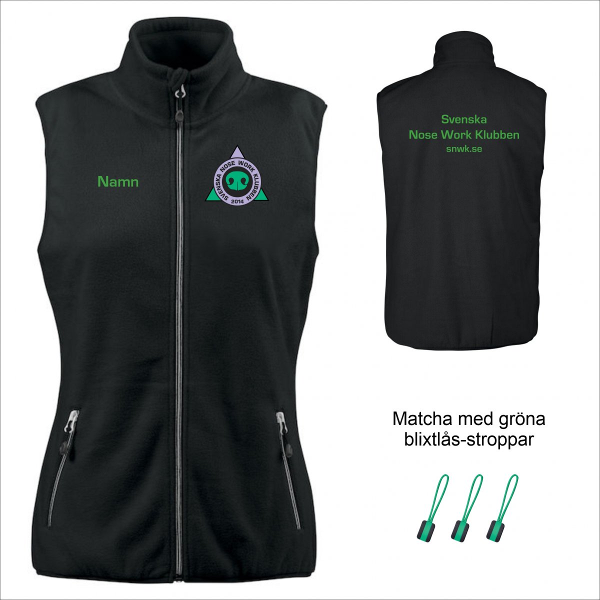 Dubbelsidigt borstad fleeceväst. Framfickor och öppning med kontrasterande dragkedjor. Elastisk tape i nederkant. Färg svart.