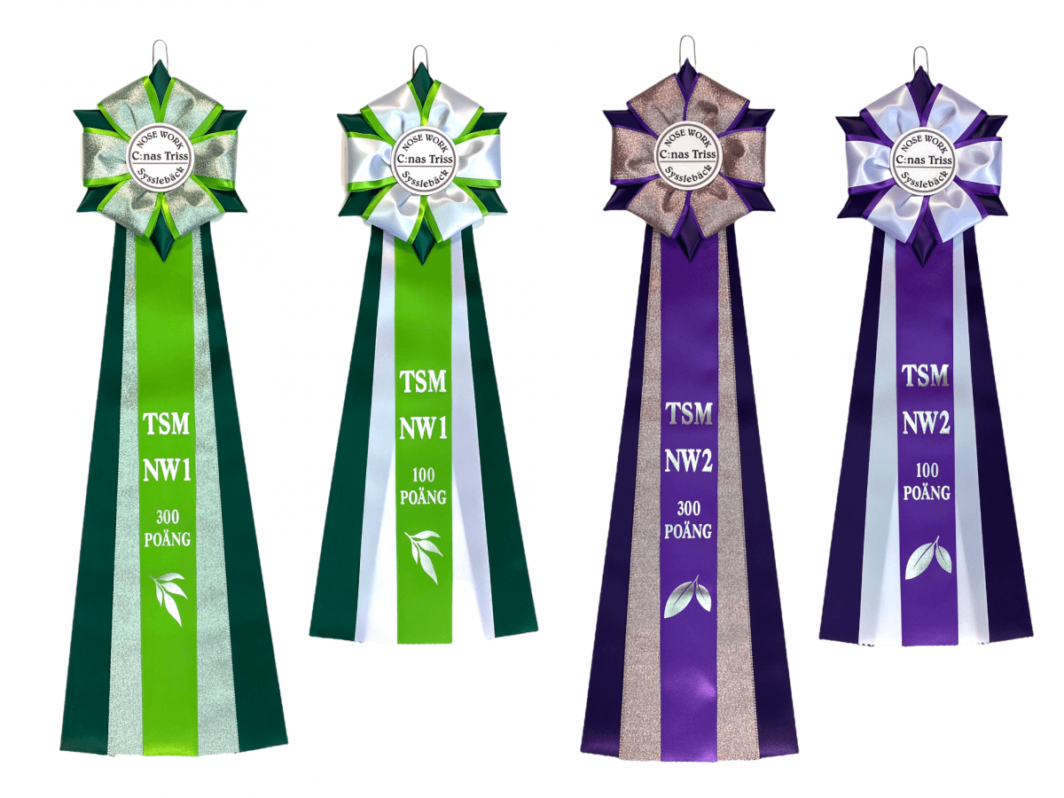 Tryck av centrumbricka och text på ett band ingår i priset.