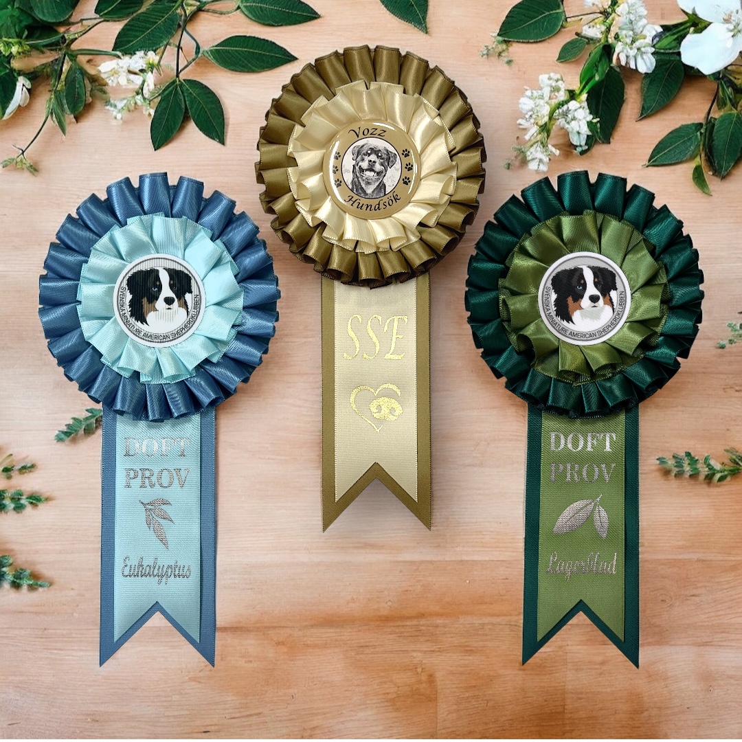 Rosetten kan göras med längre band, se bilder. Begär offert.